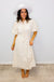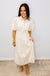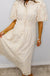 Effortlessly chic and undeniably charming, this beige midi dress combines timeless elegance with modern flair. The pleated waist creates a flattering silhouette while the half front button placket adds a touch of vintage-inspired detail. Delicate eyelet lace throughout brings an airy, romantic feel perfect for everything from brunch dates to garden parties. Slip it on and let the dress do the talking—because looking this good should feel this easy!