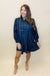 Get ready to dazzle at your Christmas party with this playful Blue Plaid Taffeta Dress. Featuring long sleeves and a chic drop waist, it hugs your silhouette with just the right amount of flair. The delicate button details add a touch of festive charm, making it the perfect pick for holiday fun and twirls.