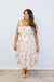 Twirl into spring with this charming red multi-floral midi dress! The square neckline and delicate shoulder ties create an effortlessly chic silhouette, while the sleeveless cut keeps things breezy and light. Layered tiered skirt adds movement and dimension with every step. Perfect for garden parties, brunch dates, or whenever you want to feel like the best-dressed guest in the room. A versatile piece that transitions beautifully from day to night.