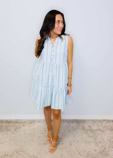 Twirl into spring in this charming sky blue floral tiered dress! Featuring delicate contrast detailing and a flattering top button closure, this fe...