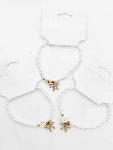 The cutest and most perfect pearl initial bracelet with the bow charm detail!