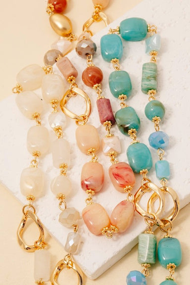 Spruce up any look with this Gemstone & Gold Long Beaded Necklace. Perfect for adding a touch of pizzazz to your outfit, this necklace is a mus...