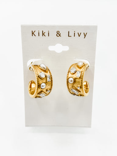 Make a statement with these Gold Pearl Rhinestone Hoop Earrings—the perfect accessory for your next night out! Sparkling rhinestones catch the ligh...