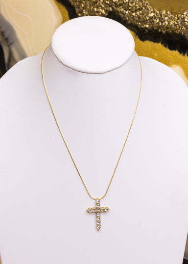 Sparkle with purpose in this stunning Gold Cross Rhinestone Circle Necklace. Delicate rhinestones dance around a meaningful cross pendant, creating...