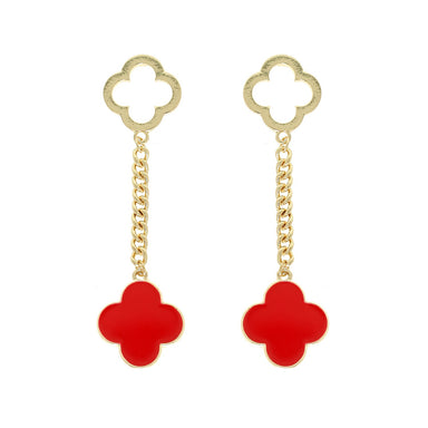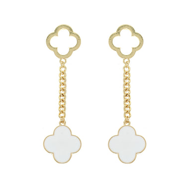 FOUR-LEAF CLOVER QUATREFOIL CHARM LONG DROP STUD EARRINGS HEIGHT: 3.15" WIDTH: 0.75"