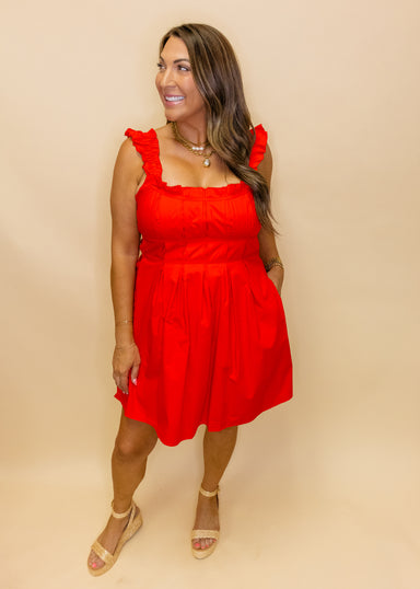 Step into the spotlight with this White Ruffle Tiered Dress—a fun and flirty showstopper perfect for any bride-to-be. The playful tie-back detail a...