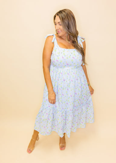 Twirl into romance with this dreamy cream floral maxi dress! Adorned with a lush botanical print, it features adjustable tie-shoulder straps and a ...