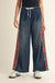 Dark Denim Leopard Red Stripe Pants