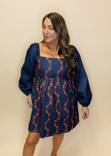 Twirl into spring in this charming denim dress that's equal parts sweet and chic! The smocked bodice hugs you just right, creating a flattering sil...