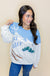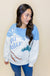 Hit the slopes or the beach in this playful Blue & White 'Ski Ya Later' Sweatshirt! Featuring eye-catching sequin and beaded details that sparkle with every move, this long sleeve piece brings vacation vibes wherever you're headed. Whether you're lounging by the pool or catching fresh powder, you'll stay cozy and stylish. The fun graphic paired with shimmering embellishments makes this sweatshirt the perfect statement piece for your getaway wardrobe. Pack it, wear it, love it!