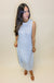 Unleash your full glam moment with this showstopping White Rhinestone Midi Active Dress! Sleeveless and stretchy, this dress is covered in rhinestones for an eye-catching look. Perfect for any occasion where you want to make a statement.