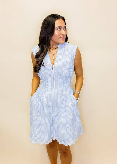 Brighten your spring wardrobe with this charming Blue Stripe Smocked Floral Dress! Featuring delicate smocking at the bodice and a cheerful mix of ...