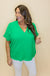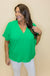 Looking for the perfect everyday top? Look no further than our Kelly Green Solid V-Neck Top! This solid boxy top has a flattering V-neckline and short sleeves, perfect for any occasion. With its lightweight and non-sheer fabric, this top is not only stylish but also comfortable. Upgrade your wardrobe with this must-have piece!