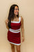 Score a style touchdown with our Crimson & White Border Set. Featuring a cropped tank top with a bold white border, and a sleek pencil skirt with contrast color trim and a concealed zipper. This set is perfect for game day or any day you want to show off your team spirit. Set Sold together.