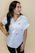 Meet your new go-to top! This crisp white poplin beauty features a polished collared button-down design with playful rhinestone embellishments that catch the light just right. The short sleeves keep things breezy and comfortable, making it perfect for warm weather styling. Whether you're heading to brunch, the office, or a casual night out, this chic piece transitions effortlessly from day to night. Simple, sparkly, and oh-so-versatile—your closet just got a whole lot more fun.