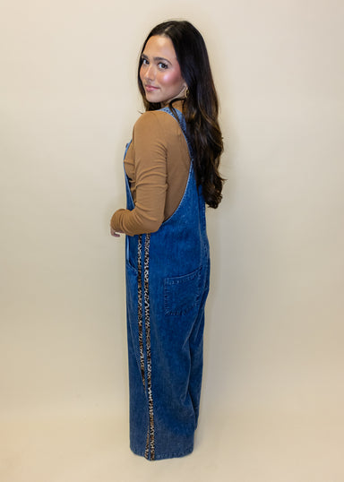 Step into style with these adorable Denim Leopard Stripe Overalls! Featuring a playful mix of classic denim and bold leopard stripes, these overall...