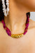Make a splash with the Lavender Scarlet Twist Necklace, featuring a bold hammered gold pendant that catches every eye. Wrapped in a silky scarf, this statement piece adds a playful twist to your outfit, perfect for turning heads with effortless style.