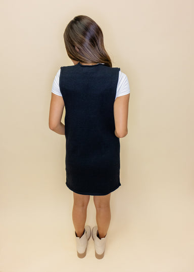 This sleeveless Black V-Neck Knit Dress combines cozy comfort with a flirty twist. Its deep V-neck adds a touch of allure, while the relaxed fit an...