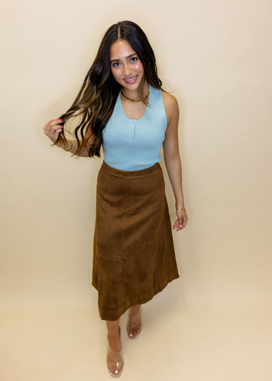 Elevate your style with this playful brown top featuring charming 3/4 puff sleeves and a chic standing collar. The subtle side slit adds a flirty t...