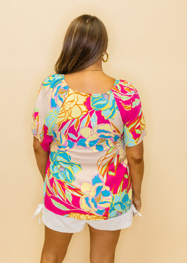 Escape to paradise without leaving your desk! This vibrant tropical print top brings island vibes to any occasion, whether you're conquering the of...