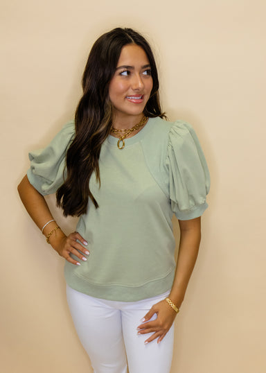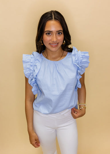 Light Blue Elastic Hem Top