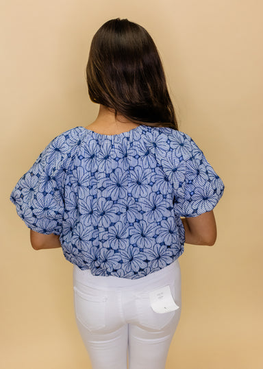 Introducing our Blue & White Checkered Scattered Magnolia Button Up Top - a stunning addition to any wardrobe. With long sleeves and intricate ...