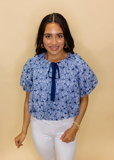 Embrace the season in this charming sky blue crochet detail top! Featuring delicate crochet accents and a breezy short sleeve design, it's the perf...