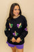 Get ready to turn heads with this Black Fleur-De-Lis Multi Sequin Sweatshirt! Covered in shimmering sequin details featuring iconic fleur-de-lis patterns in purple, gold, and green, this playful piece brings instant Mardi Gras magic to your wardrobe. Perfect for parades, parties, or whenever you want to add some sparkle and festive flair to your look. The bold sequin design catches the light beautifully, making sure you're the star of any celebration. Comfortable enough for all-day wear, this sweatshirt is your ticket to standing out in style.