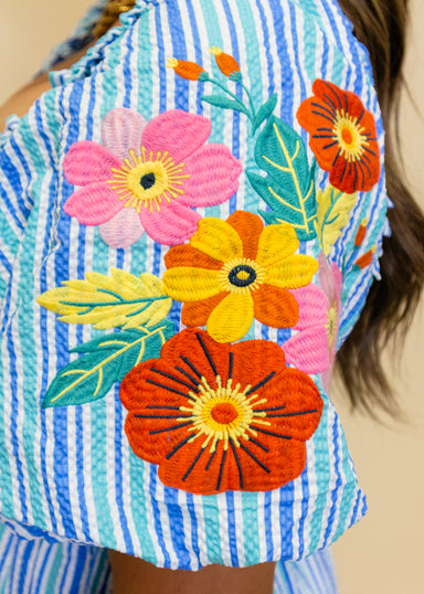 Get ready to turn heads with this whimsical patchwork print ruffle collar top. Bursting with colorful, mixed patterns that dance across the fabric,...