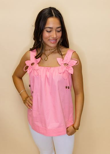Step into country charm with the Brown Eyelet Tie Top. Featuring delicate eyelet details and a breezy boat neck, this sleeveless top pairs perfectl...