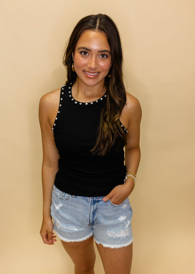 Get ready to rock the beach in our Seafoam Ribbed Bottom Fitted Top! This ribbed sweater tank top features a round neck with button trim and sleeve...