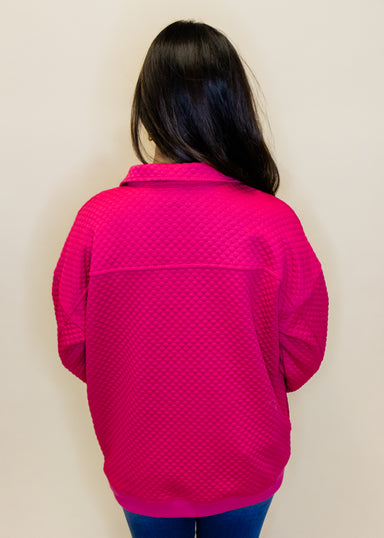 Upgrade your casual wardrobe with this pink Textured Half Zip Pullover. The textured fabric adds a unique touch to this otherwise classic piece, wh...