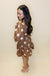 Twirl into the spotlight in this adorable brown mini dress featuring charming white polka dots and a flirty bow accent at the front. Perfect for date night, brunch, or whenever you want to add a dash of vintage-inspired fun to your wardrobe. The playful polka dot pattern pairs effortlessly with your favorite sneakers or heels, making it a versatile go-to piece that brings instant personality to any occasion. Sweet, sassy, and undeniably cute!