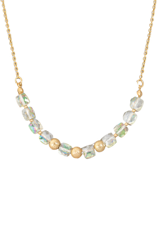 Add some shimmer to your wardrobe with our Gold Faceted Glass Beaded Necklace! Whether dressing up for a special occasion or adding a touch of glam to your everyday look, this necklace will elevate any outfit. Shine bright like a diamond (or gold faceted glass beads)!