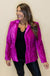 Elevate your wardrobe with this stunning hot pink velvet blazer that's equal parts bold and sophisticated. The luxurious crinkle velvet fabric adds texture and dimension, creating a dynamic look that catches the light beautifully. Perfect for dressing up your everyday outfits or making a statement at special events, this blazer pairs effortlessly with everything from jeans to dresses. The rich, eye-catching color ensures you'll turn heads wherever you go. A versatile piece that brings instant glamour and confidence to any ensemble.