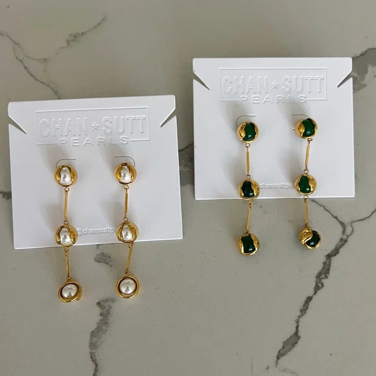 Get ready to turn heads with The Scarlett Pearl Earrings. These stunning triple drop earrings will add the perfect touch of glamour to any outfit. You'll feel like a true pearl wearing these beauties.