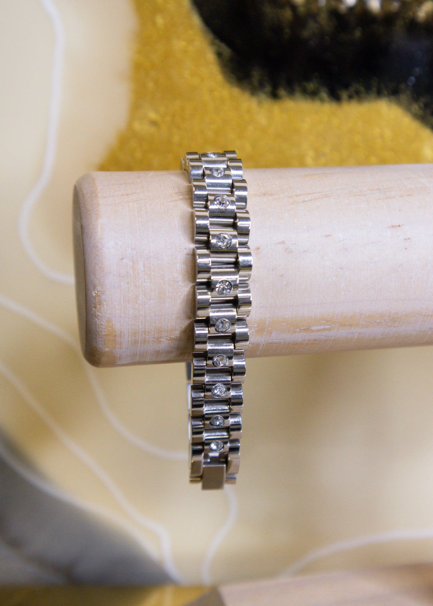 Look luxe without the heavy price tag with this Thin silver & Diamond Watch Band! Boasting a bracelet link and lots of diamond accents, it's perfect for adding a sparkle to your wrist; talk about arm candy!